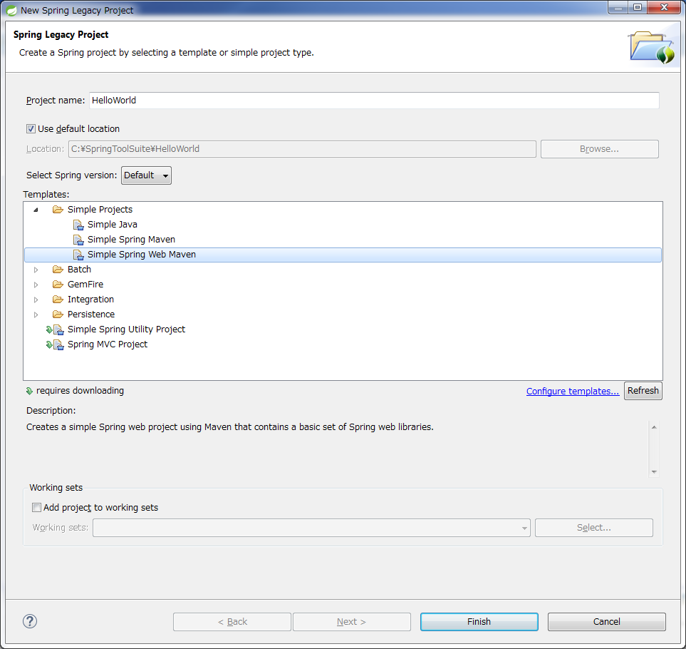 今回は何もいじっていないので、「HelloWorld-0.0.1-SNAPSHOT.war」となっています。