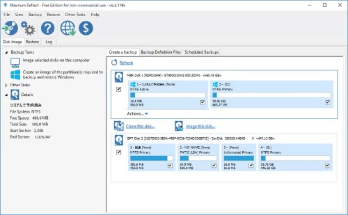Macrium Reflect FreeでHDDの中身をSSDにクローン
