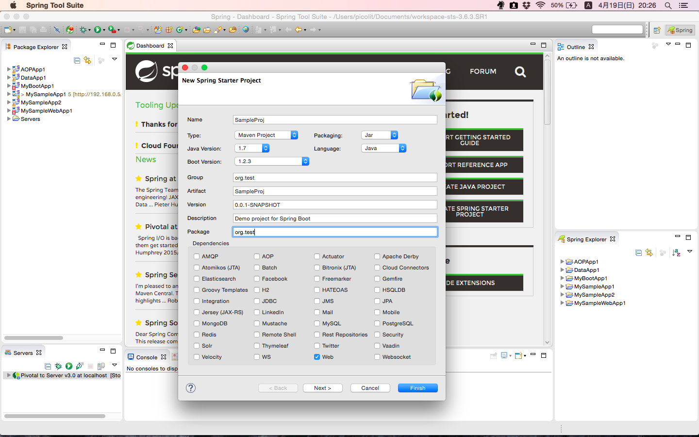 各メニューはSpring用に特化されており、Spring用プロジェクトもすぐに作成することができます。