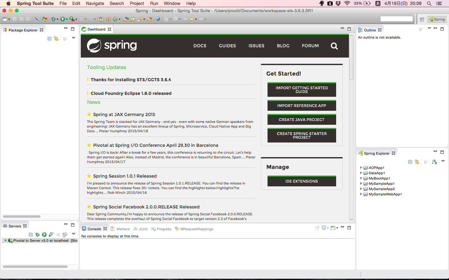 http://spring.io/tools のサイトよりダウンロードできます。