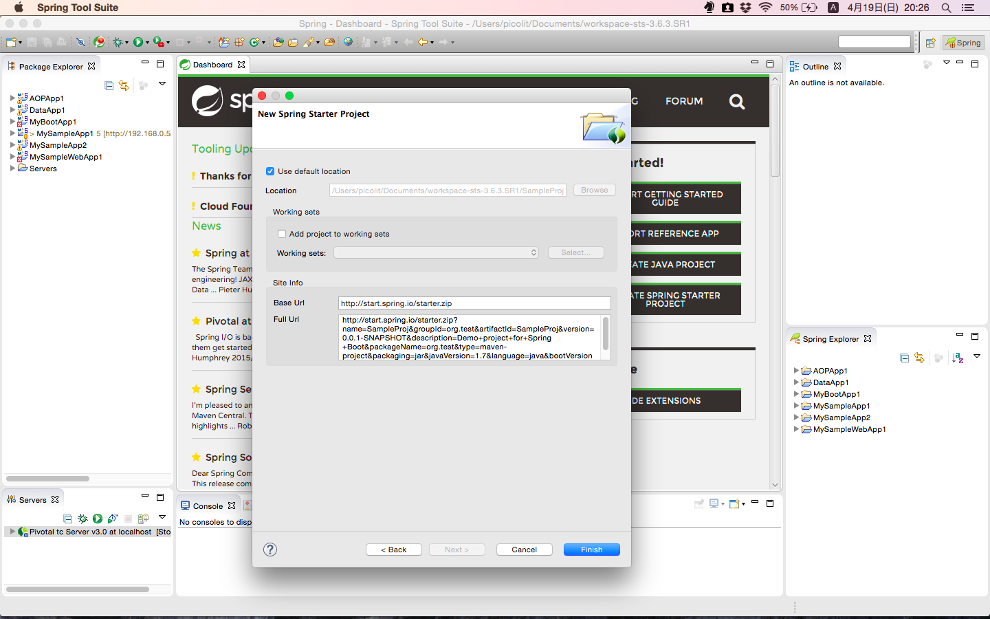 Spring Start Projectは、Springのサイトにアクセスして、必要なファイルをダウンロードして作成してくれます。