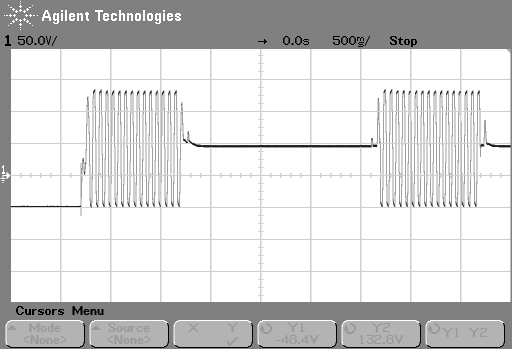 電話回線シミュレータを用いて測定した呼び出しベル信号の波形.
