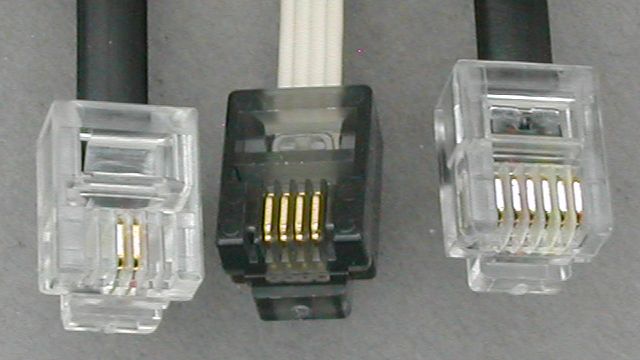 左から6極2芯,6極4芯,6極6芯. アダプタと電話の接続にはどれでも使用出来ます.