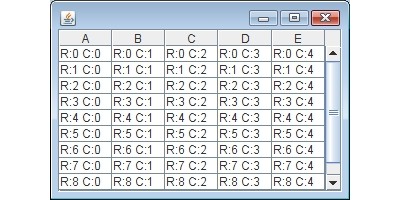 model.setValueAt("R:" + i + " C:" + j, i, j);