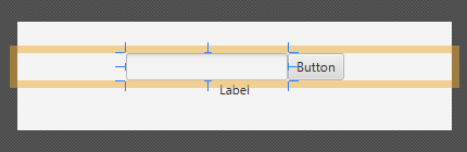 では、HBoxにコントロールを貼っていきましょう。まずはTextFieldをHBoxにドラッグ・アンド・ドロップし、同様にButtonもドラッグ・アンド・ドロップします。いずれも要素ペインの「Controls」カテゴリーに配置されています。Buttonまで貼った後の編集ペインを図10に示しました。