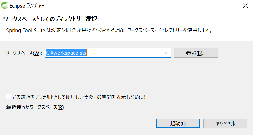 STS.exeをダブルクリックし、ワークスペースを選択します。(基本デフォルトのままでOKです。)