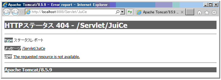 ブラウザにURLパス:http://localhost:8080/Servlet/JuiCeを入力し、Enterを押す。