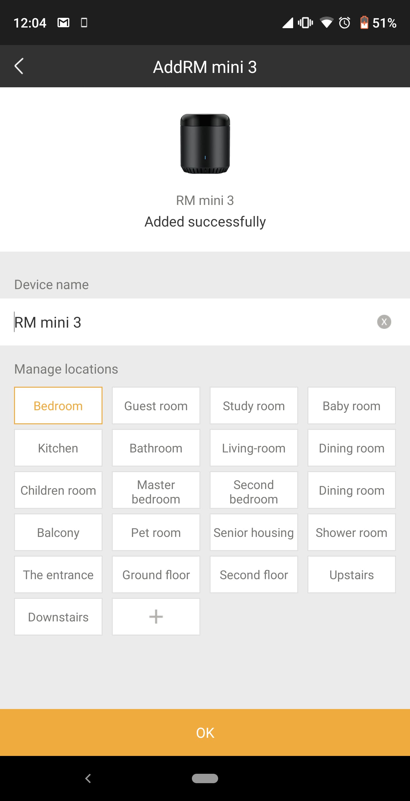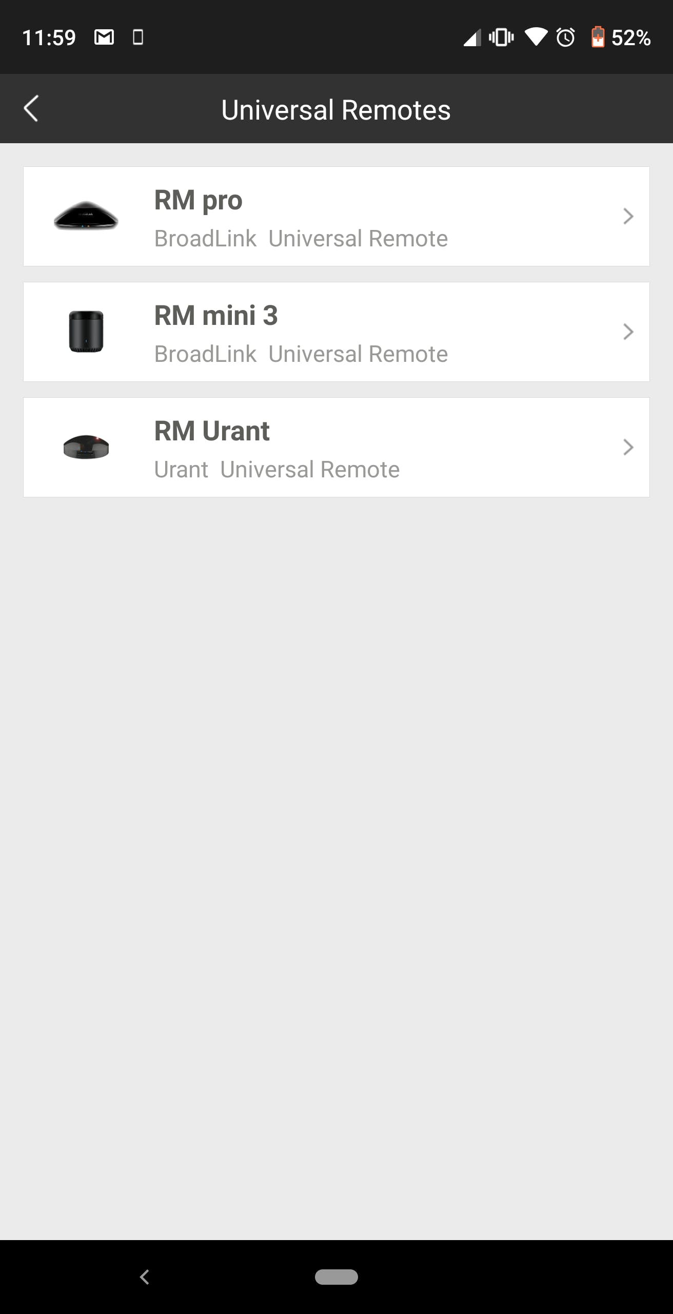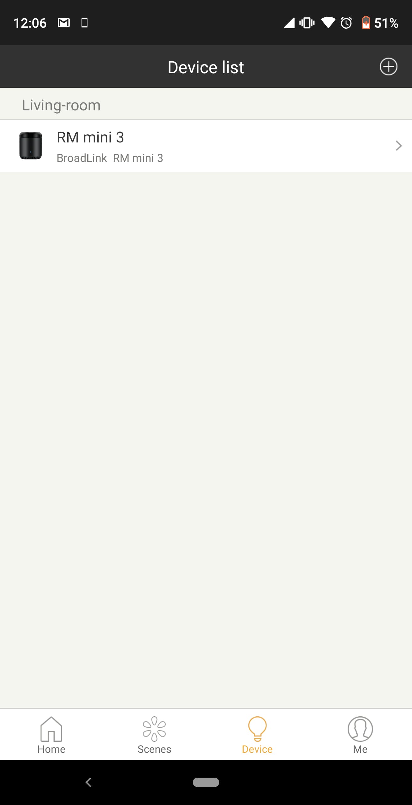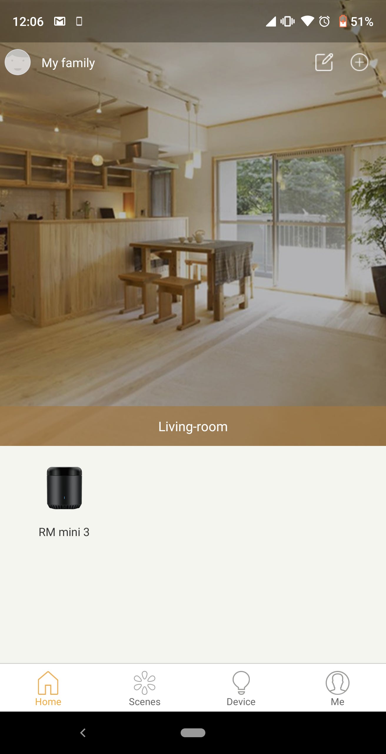 RM mini3のWifiへの接続が完了すると、HomeタブにRM mini3が表示されます。