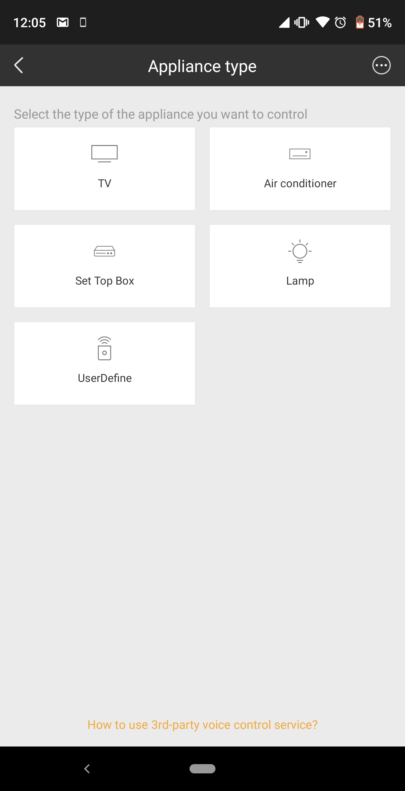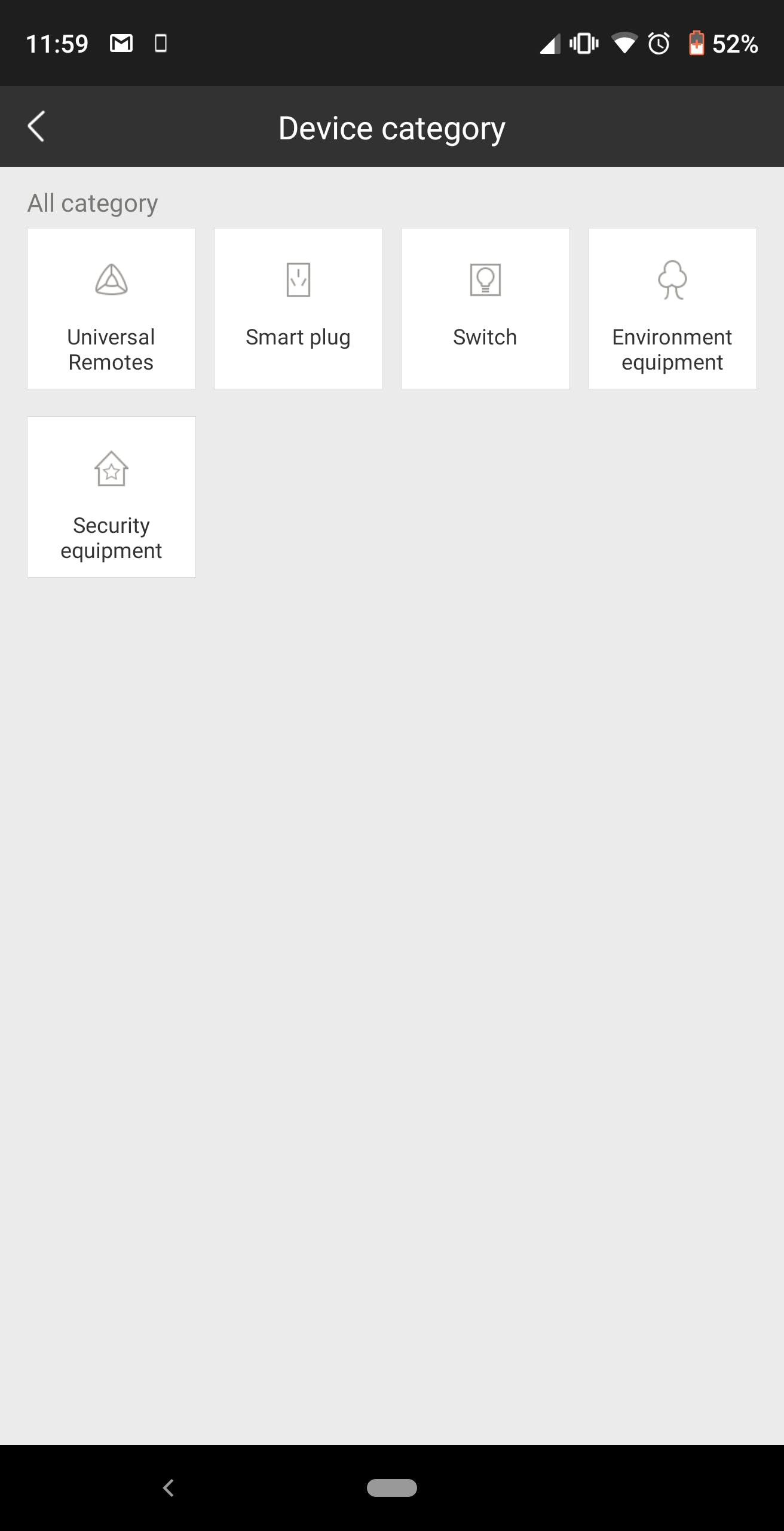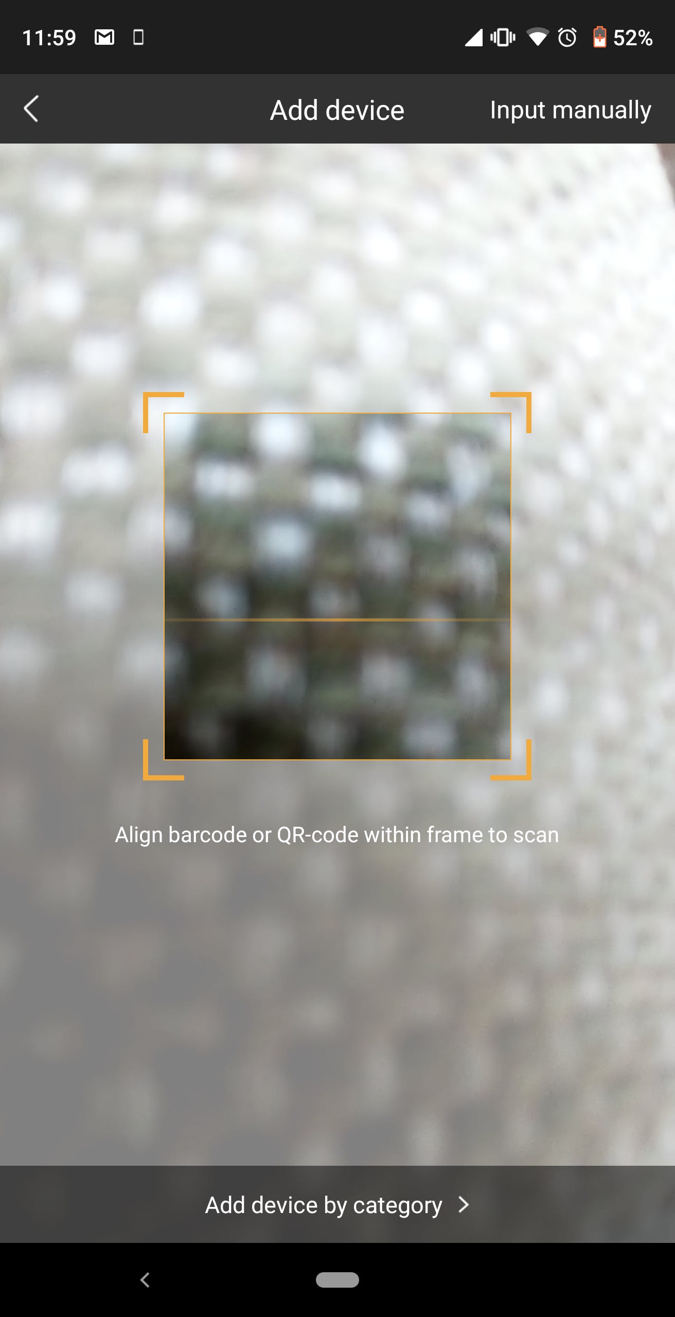 QRコードスキャン画面が表示されますが、画面下部の「Add device by category」を選択します。