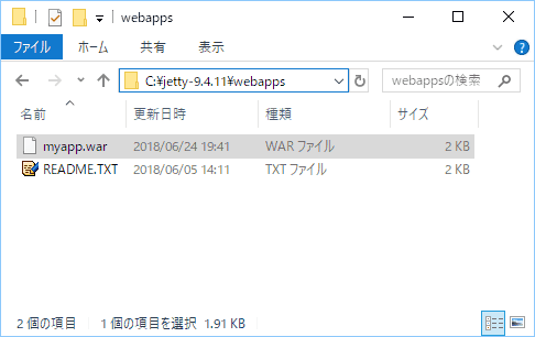 Jetty への Web アプリケーション配備はとても簡単です。Jetty の webapps フォルダーに WAR ファイルをコピーするだけでデプロイ (配備) が完了します。
