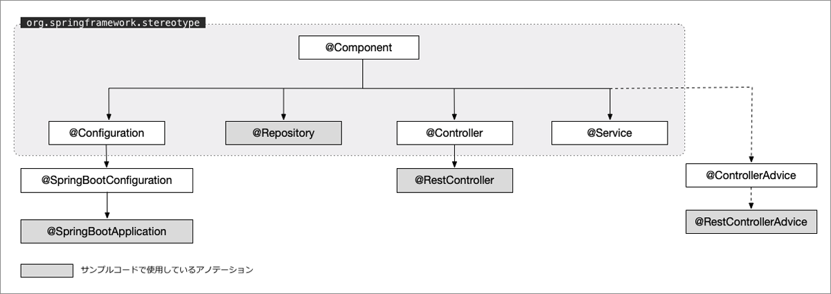 例えば、サンプルアプリケーションで利用しているBean定義のためのアノテーションの構造は3のようになっています。
