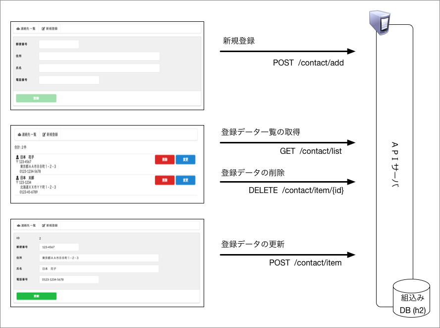 サンプルアプリケーションは、前回と同様で図1に示すような簡単な住所録管理アプリケーションです。