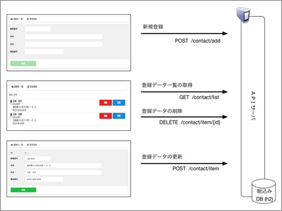 | /contact/list | GET | 登録してあるデータ一覧を取得する |