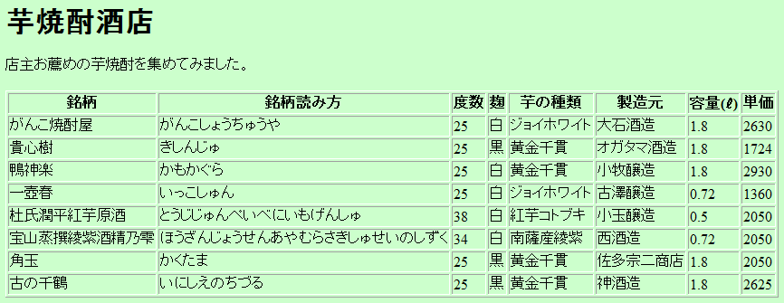 架空のネットショップである「芋焼酎酒店」を作成していきます。「芋焼酎酒店」は以下の仕様を満たすものとします。