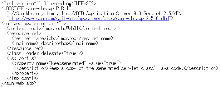 web.xml、sun-web.xmlでコネクションプールのJNDI名を指定する