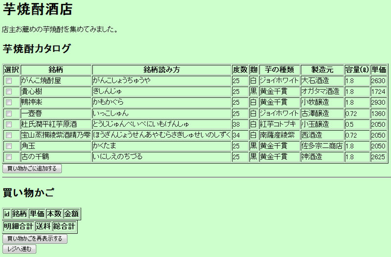 買い物かごが空の状態の「芋焼酎酒店」のイメージは図1の通りです。