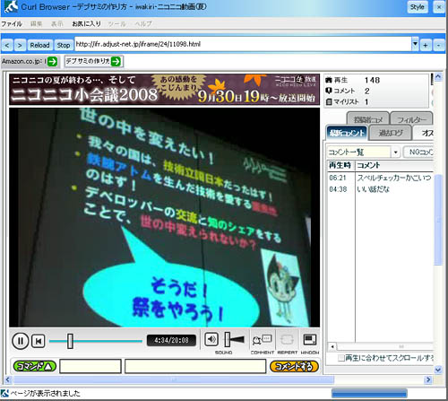 まず、最初に目に付いた、非常にシンプルなUIの「Curlブラウザ」から紹介します。HTMLのレンダリング自体は割と軽快で、JavaScriptだけではなくFlashやJavaアプレットさらにSilverlightも動作していました。Internet Explorerのコンポーネントを使用しているそうです。また、アドレスバー右の「+」「-」ボタンをクリックするとブラウザの透明度を変更することが可能です。