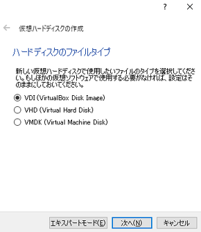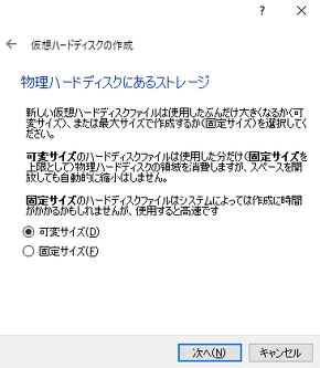 [仮想ハードディスクを作成する]を選択し、[作成]をクリックします。