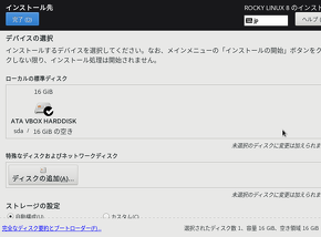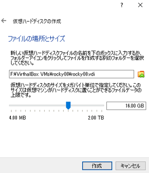 仮想HDDのサイズを決めます。先ほどの表示ではインストールに必要な容量は8GBと表示されていましたが、AlmaLinux、Rocky Linuxともに10GB以上の容量を使用します。ここでは16GBとします。もちろんそれより大きくても問題はありません。
