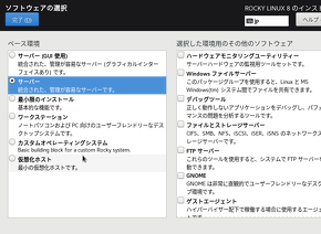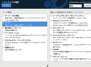 「ソフトウェアの選択」で、デフォルトでは「サーバー(GUI使用)」が選択されています。サーバ用途ならGUIは不要かと思いますので「サーバー」を選択し、[完了]をクリックします。
