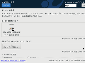 続いて「インストール先」ですが、こちらは仮想HDDが選択され、パーティション作成も自動で行われるため、開いて[完了]をクリックするだけです。