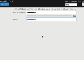 「rootパスワード」でrootユーザーのパスワードを入力し、[完了]をクリックします。