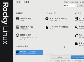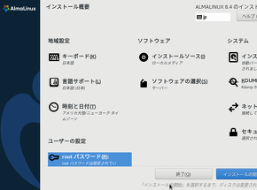 AlmaLinuxもRocky Linuxもインストーラは基本的にCentOSと同じです。それほど迷う部分はないかと思います。幾つか設定が必要な箇所があるので設定していきます。