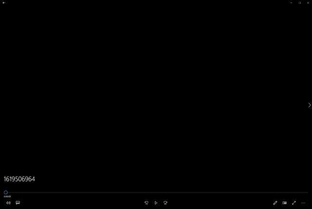 Windowsの「動画 & テレビ」アプリで再生した際の表示。黒画面のまま進まない。