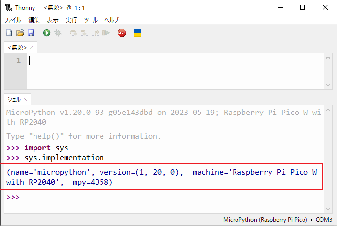 led.value(0) # 出力をlowにする(LEDが消灯)