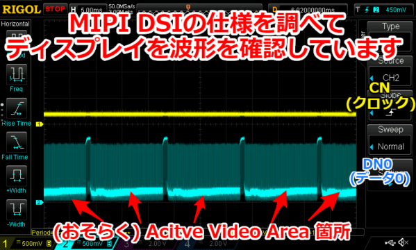 MIPI DSIのディスプレイの波形をオシロスコープで測定してみました。
