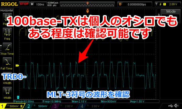 個人のオシロでも100base-TXに関してはある程度は測定ができました。