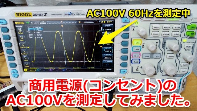 商用電源のコンセントのAC100Vも測定することが可能です。