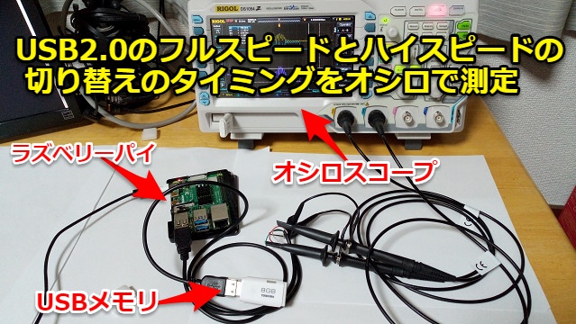 ラズベリーパイからUSBをリセットさせることで、切り替え時の波形を確認しています。