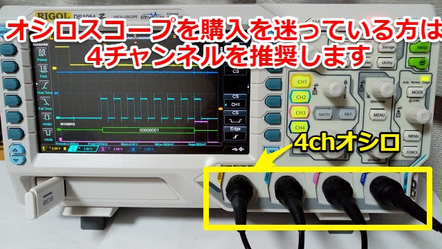 オシロスコープを使う上ではチャンネル数が多いと測定が楽になります。