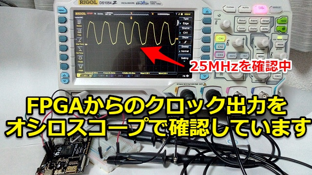 FPGAからのクロック出力をオシロスコープで確認してみました。