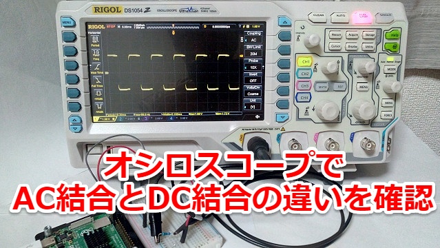 オシロスコープで波形測定してAC結合とDC結合の違いを確認してみました。