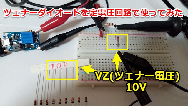 ツェナーダイオードを使って、一番簡単な定電圧回路作ってみました。