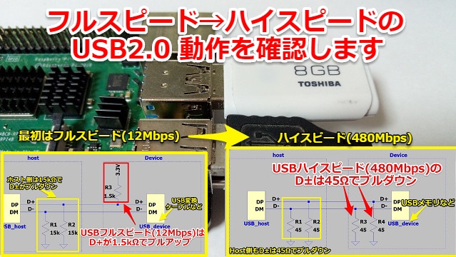 USB2.0は最初にフルスピード(12Mbps)で接続して、その後ハイスピード(480Mbps)になります。