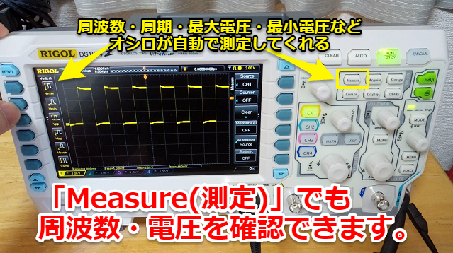 カーソル以外でも「Measure(測定)」を押すことで自動で周波数・電圧を確認できます。