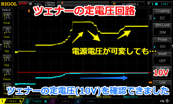 原理通り動作しているかオシロスコープで確認しています。(リンクはこちら)